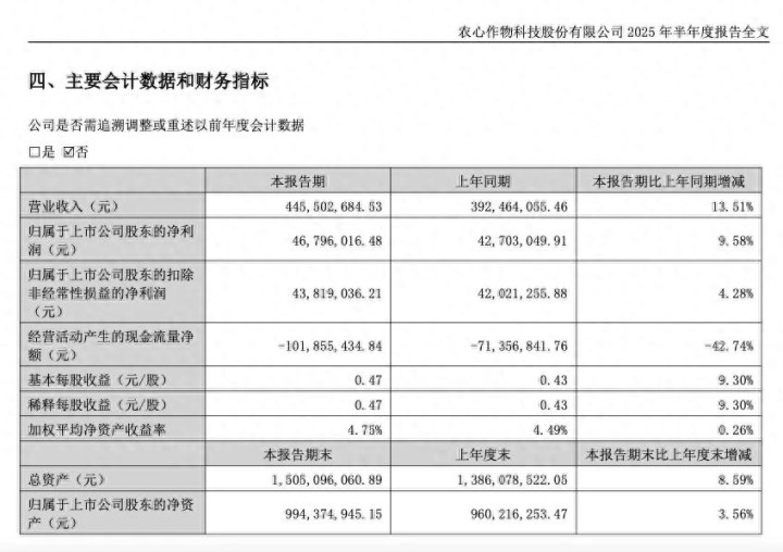 农心科技(001231)发布2025年半年报,实现营业收入4.46亿元,较上年同期增长13.51%;归属于上市公司股东的净利润4679.60万元,较上年同期增长9.58%。报告期内线上股票配资门户,公司短期借款为1000.36万元线上股票配资门户,增加1000.36万万元;长期借款为1.35亿,增加1.35亿。总计借款1.45亿,增加1.45亿。